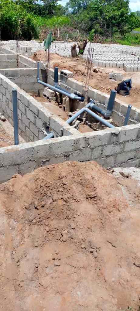 Ein Team von Klempnern hat heute mit der Verlegung der Rohre auf dem Projektgelände des Krankenhauses begonnen.