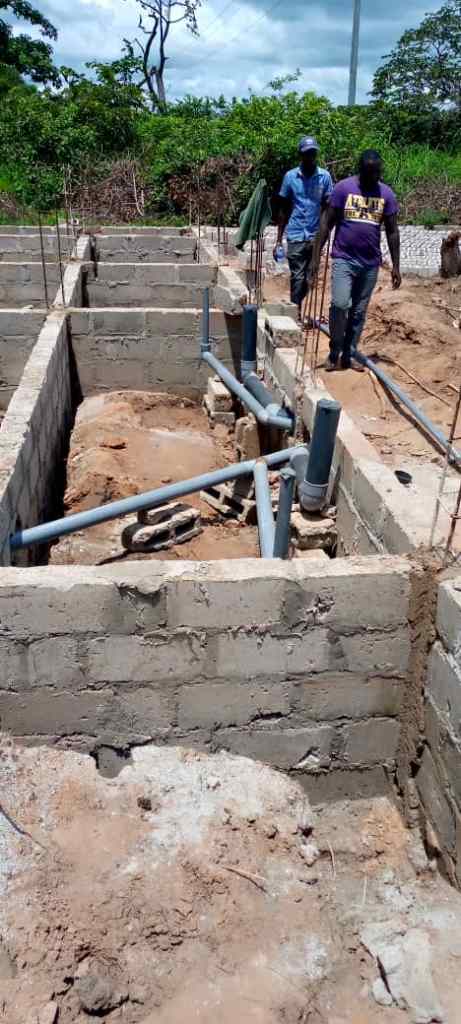 Seit ein paar Wochen beteiligt sich eine Vielzahl von Männern und Frauen vor Ort beim Aufbau des Krankenhauses. Die erste Phase unseres Projekts wurde vergangene Woche abgeschlossen. Die Dorfbewohner befüllten das fünfläufige Fundament. Bei den Arbeiten wurde Kies und Sand gesammelt und im gesamten Erdgeschoss verteilt, um ein starkes Fundament zu bilden. Außerdem wurden weitere Blöcke von einem anderen Teil der Jugend hergestellt. Ein Team von Klempnern hat mit der Verlegung der Rohre auf dem Projektgelände des Krankenhauses begonnen.