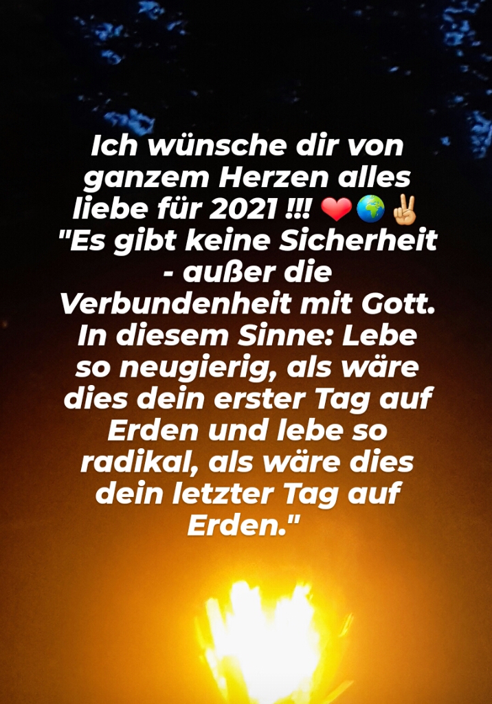 „Es gibt keine Sicherheit – außer die Verbundenheit mit Gott. In diesem Sinne: Lebe so neugierig, als wäre dies dein erster Tag auf Erden und lebe so radikal, als wäre dies dein letzter Tag auf Erden.“❤