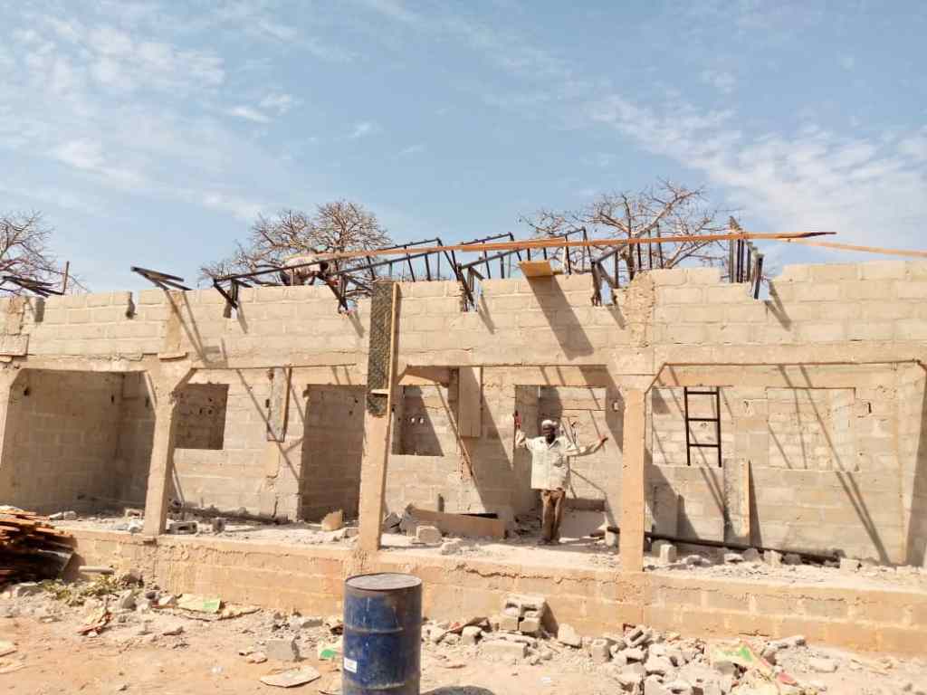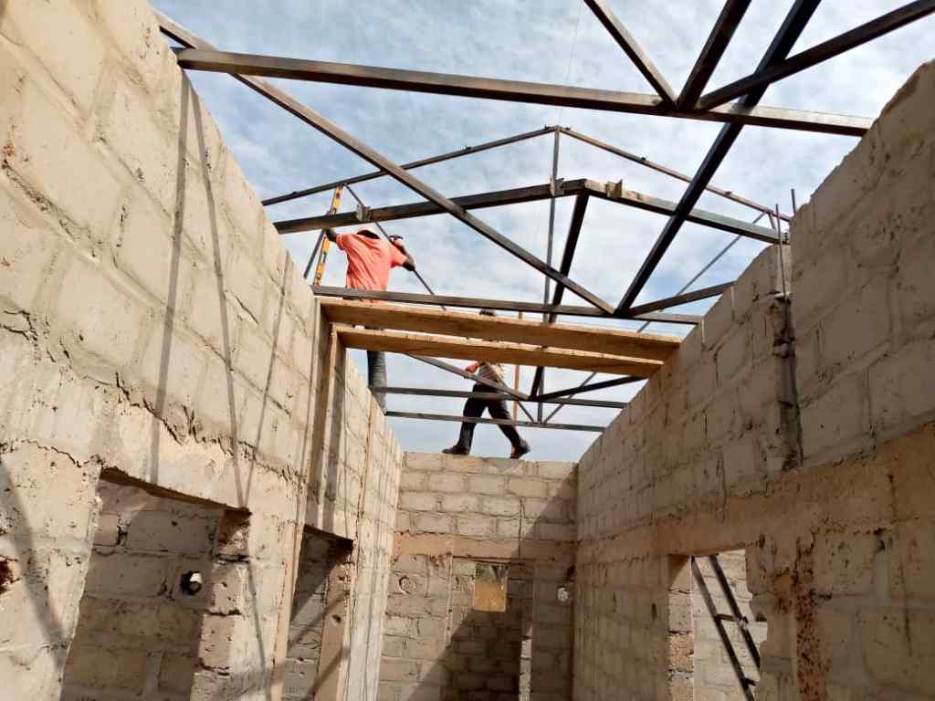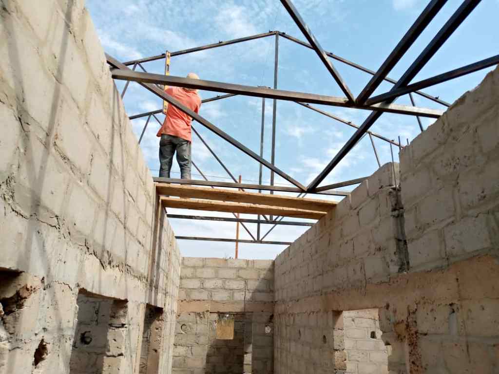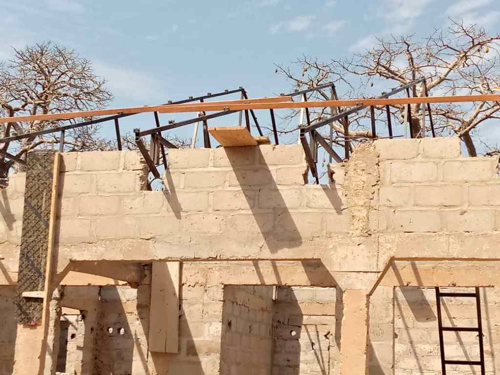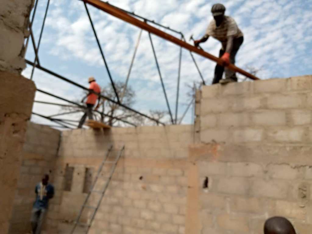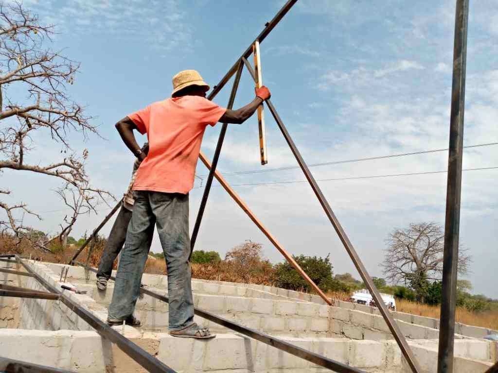 Wir beginnen die Woche mit einer sehr anspruchsvollen Aufgabe. Heute arbeiten Dachdecker und Schreiner gemeinsam daran, dass die technischen Messungen ordnungsgemäß durchgeführt werden. Die geschweißten Eisenstangen wurden auf dem Gebäude anbracht. Das Eisen wurden von Freiwilligen aus Jattaba, manuell auf das Gebäude getragen.💪💪