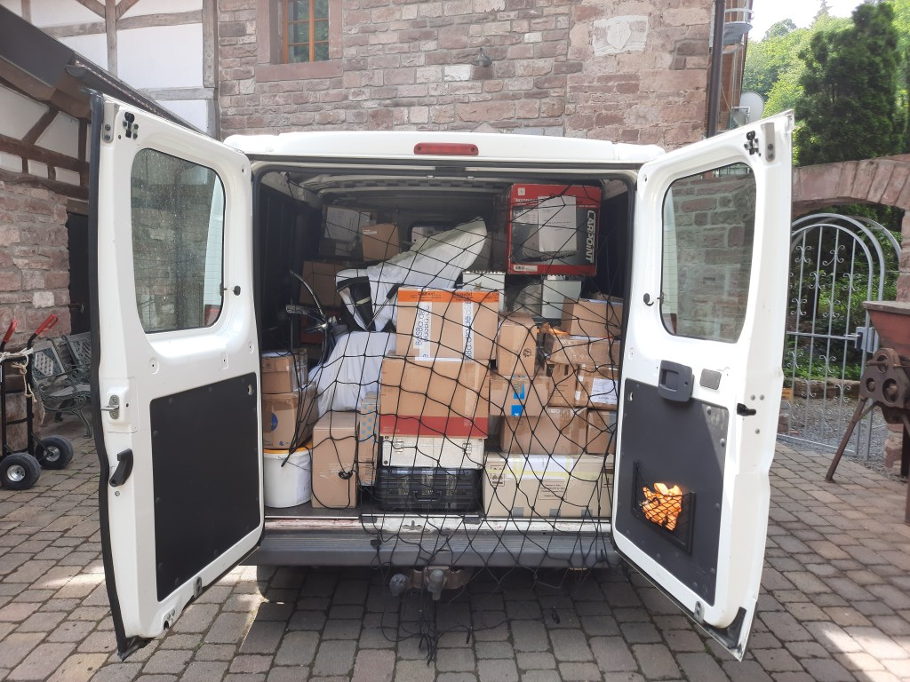 (Fast) Alle Sachspenden, die sie zuvor in der RNZ und den FN abgedruckt hatten, sind eingegangen! Ich danke den Menschen in Buchen vielmals! Sie sind unschlagbar! Auch das KH in Buchen meldete sich bei mir und bot mir 30 KH-Betten an, die ich aber aufgrund der schweren Last von je 250 kg nicht nehmen konnte – wir haben nun Betten von der Bundeswehr bekommen (diese sind leicht und einfach zu verschiffen!).