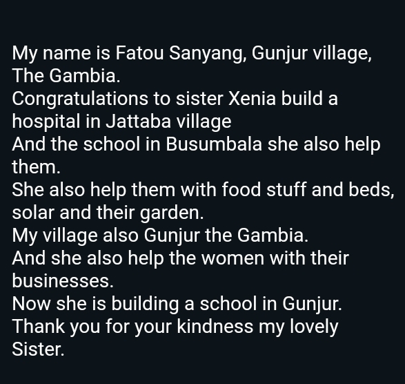Moreover, Xenia provided the clinic with all the essential amenities, including free medication, making healthcare accessible to even the most vulnerable members of the community and its environs. Her dedication and contributions earned her an extraordinary honor: the community of Jattaba conferred upon her honorary citizenship, recognizing her unparalleled impact and service to their lives.